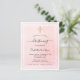 En modern, elegant döende, som firar ett flicka. En rosa och vitt ramar dekorerad med små gyllene gnistor, prickar och ett gyllene kor. Anpassa och lägg till information om namn och party. Svart färgad brev.