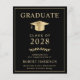 Elegant- och budgetvänlig utexaminering av svarta högskolor och partiinbjudan med en guld-studentmössa och enkel modern lätt guld typografi för student, klassår, högskola eller universiteten, examen och större eller högre.