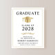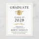 Elegant och prisvärd college-examensannons med en guldfärgad studentmössa och modern typografi för examenets namn, årskurs, högskola eller universitet, examen och huvudämne eller utmärkelser.