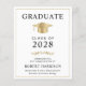 Elegant och prisvärd college-examensannonsering och festinbjudan med en guldexamenmössa och modern, enkel typografi för examenets namn, examensår, college eller universitet, examen och huvudämne eller hedersbetyg.