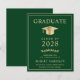 Elegant och prisvärd mörkgrön klassisk universitets-examens inbjudan med en guldfärgad examenshatt och modern ljusguld typografi för examenets namn, årskull, universitet eller högskola, examen och huvudämne eller utmärkelser.