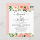 Budgetkorall, persiko- och vit Blommigt och Eucalyptus Grey Botanical Vår eller Summer Brunch och Bubly Champagne Inbjudningskort för möhippa - innehåller vackra och elegant manustypografi med moderna botaniska blommor och grönt för speciella Bride att Blockera firande för ett kommande Bröllop.