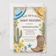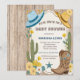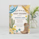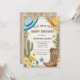 Yeehaw! Sätt dig i sadeln, partner, för en liten cowboy är på väg! Var beredd att tippa hatten och kasta upp lite damm när vi firar den blivande mamman (eller föräldrarna) i riktig rustik western cowboy-stil med denna charmiga baby shower-design för pojkar. Tänk dig en sandfärgad vattenfärg bakgrund prydd med en samling kaktusar, en trofast hästsko, klassiska stövlar och en cowboyhatt, allt sammanbundet med en väderbiten träskylt som stolt kungör den kommande 'Baby Shower.'