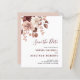 Budget Boho Dammtrosa akvarellblommig Eukalyptus Bröllop Spara datum... Om du älskar en chic bohemisk look och ska gifta dig, här är ett vackert prisvärt Spara datum-kort att överväga. Vårt budgetkort för Spara datum har en boho-stil dammtrosa och burgunderfärgad blommig arrangemang med eukalyptusblad ovanför din bröllopsannonstext i svart och burgunderfärgad bläck. Baksidan av kortet innehåller din returadress, ett personligt meddelande och information om din bröllopswebbplats på en ljus roséguld bakgrund. All exempeltext kan enkelt revideras med din egen information i personaliseringsmallen.