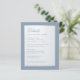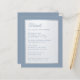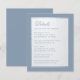 En mycket enkel budget bröllopsdetaljer bifogad kort. Den har en dammig blå och falskt silver rektangulär ram och dammig blå text på vit bakgrund. Titeln Detaljer (som kan ändras) är skriven i en elegant kalligrafisk stil.