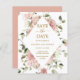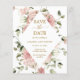 Vackra dammiga rosa rosor skapar en ram runt detaljerna för att spara datumet. Guldtext lägger till en glamourös känsla.
