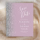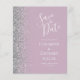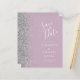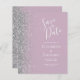 Den vänstra kanten på detta eleganta moderna bröllops-kort har en silverfärgad falsk glitterkant. Den anpassningsbara texten kombinerar vit handskriven och kopparplåtstypsnitt på en dammig lila bakgrund. Baksidan har en matchande dammig lila och silver design.
