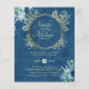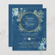 BUDGET Dammtorrsblå Guld Blommig Bröllopsinbjudan