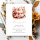 Denna söta bebis shower-inbjudan har en akvarellbild av en grupp pumpor i pastellfärger, omgivna av rosa blommor. Nedan visas orden "Det är en tjej!" i elegant rosa handskriven skrift. Anpassa texten med namnet på den blivande mamman i rosa skrift och detaljerna i kolgrå sans serif-teckensnitt på vit bakgrund.