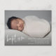 Denna moderna dopinbjudan för babyfoto har en vacker horisontell bild som sträcker sig över hela sidans bredd och handskriven dopkonst och minimal redigerbar text. Klicka på redigeringsknappen för att anpassa denna design.