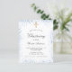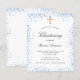 En modern, elegant dopning som firar en babypojke. En stilren vit bakgrund dekorerad med blå falsk glitterdamm och ett gyllene kors. Personifiera och lägg till ett namn och festdetaljer. Svarta bokstäver.