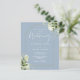Den här eleganten botaniska gienery löv bröllopsinbjudan kan vara personlig med dina uppgifter i chic typografi med ditt monogram initialer på motsatt sida på en dammig blå bakgrund. Designad av Thisisnotme©