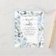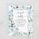 Budgeten Dusty Blue Blommigt Ro och Eucalyptus Botanical Grey Watercolor Vår eller Summer Bröllop Brunch och BubLY Champagne Inbjudningskort för möhippa - innehåller vackra och elegant manustypografi med moderna tropiska botaniska blommor och grönenergi för speciella Briden i firande.