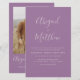 Budgetera Anpassa den här Dusty Lila Lilac Amethyst Simple och Elegant Dubbla Side med foto på bakre inbjudan med ditt meddelande och information. Den här inbjudan till chic innehåller en enkel handskriven manustypografi för snyggt och elegant för att det speciella Bröllopen ska kunna vara firande.