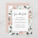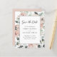 Budgetkort för Blommigten Eucalyptus Bröllop spara datum i Ro ... Vår romantiska blommigt Spara datumkortet har en arrangemang av lush dammig rosa ros och eukalyptus greenery som sätter bröllop spara på texten i modern kalligrafi och elegant serif-typografi. Baksidan av det här överkomliga kortet innehåller webbplatsinformation för bröllop och en grafikmall för QR-kod som du kan ersätta med en egen (eller ta bort). All exempeltext på båda sidor av kortet (förutom textbilden Spara datum) kan enkelt revideras med egna uppgifter om anpassningsmallen.