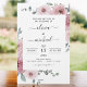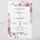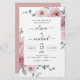 Budgeten Dusty Rosa Blommigt Ro och Eucalyptus Botanical Grey Watercolor Bröllop Vår eller Sommarbröllop - innehåller vackra och elegant manustypografi med moderna tropiska botaniska blommor och grönenergi för den speciella Bröllopsdagen firande.