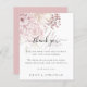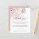 Dusty Ro Rosa Blommigt Bröllop Tack. Ett budgetvänligt SMALLER-alternativ på 4,5 x 5,6 tum. Finns på ett SEMI GLOSS 110 lb-kort LAGRAR eller ett SATIN AVSLUTAR 80 lb TINNER PAPPRA LAGRAR. Kuvert är ett valfritt extra. Anpassa texten till dina egna detaljer. På baksidan byter du favoritfoto från duschen av porträtt orientering.