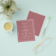 Budgetinbjudan till Dusty Ro Rosa Bröllop Vår eller sommarbröllop - omfattar vacker och elegant manustypografi med ett modernt enkelt och klassiskt färg för den speciella Bröllopsdagen firande.