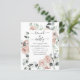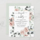 Budgeten Dusty Rosa Blommigt Ro och Eucalyptus Botanical Grey Watercolor Vår eller Summer Bröllop Brunch och BubLY Champagne Inbjudningskort för möhippa - innehåller vackra och elegant manustypografi med moderna tropiska botaniska blommor och grönenergi för speciella bruden att vara firande.