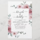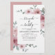 Budgeten Dusty Ro Rosa Blommigt Rosor och Eucalyptus Botanical Grey Watercolor Vår eller Summer Bröllop Brunch och BubLY Champagne Inbjudningskort för möhippa - innehåller vackra och elegant manustypografi med moderna tropiska botaniska blommor och grönenergi för speciella bron att vara firande.
