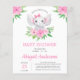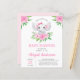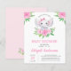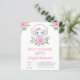 Personalisera denna tropiska rosa blommiga akvarell flickaktiga elefant baby shower eller baby sprinkle inbjudan på vit bakgrund med ditt meddelande och detaljer. Denna eleganta inbjudan innehåller rosablommor och modern botanisk grönska med söt och elegant skript typografi för den speciella blivande moderns firande.