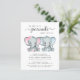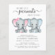 En söt och budgetvänlig tvillingpojke och flicka baby sprinkle inbjudan med "Two Sweet Little Peanuts Are On Their Way" skriven i mjuk grå typografi och en stilren script med svängar, och två pastellrosa och blå vattenfärger av baby elefanter. Lägg till den blivande mammans namn och showerdetaljerna i enkel grå typografi.