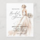Fånga essensen av tidlös elegans och grace med denna utsökta bröllopsdusch-inbjudan. Tänk dig en delikat brud försedd med en fantastisk bröllopsklänning, som håller i en frodig blomsterbukett, vars skönhet strålar ut med varje steg. Inbjudan i sig förkroppsligar sofistikation, med smakfulla designelement och raffinerad typografi.