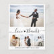 Budget, "Kärlek och tack" Handstilat Skript Hjärta Elegant, Minimalistiskt Bröllopsfoto Collage Prisvärt Tack Kort i Svart och Vitt. Enkel snygg bröllopskortsmall med fyra (4) bilder på framsidan och en bild på baksidan. Med texten "Kärlek och tack" i en vacker handstilat svans typografi skript teckensnitt. Lägg till ditt namn och tackmeddelande.