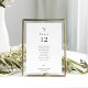 Budget Elegant och enkel chic bröllopsbord nummer med gästnamn sittplatskarta.