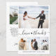 Budget "Kärlek och tack" Hand Lettered Script Hjärta Elegant, Minimalist Bröllopsfoto Collage Tackkort i svart vitt. Enkel snygg bröllopskortmall med fyra (4) bilder på framsidan och en bild på baksidan. Med texten "Kärlek och tack" i en vacker handskriven svans typografi script teckensnitt. Lägg till ditt namn och tackmeddelande.