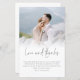Vänligen notera att det finns EN inbjudan per ark. Budget Foto QR-kod Skript Bröllopsinbjudan. STÖRRE storlek 5,5” x 8,5” till ett budgetpris. VÄNLIGEN OBSERVERA ATT DE VALFRIA KUVERTARNA ÄR LITE STÖRRE I STORLEKEN PÅ 6,75” x 9” ca. Budget Elegant Skript Foto Bröllop Kärlek Tack. Kärlek och tack är i en handskriven stil. Personifiera enkelt resten av texten med dina egna detaljer och ersätt provfotot på framsidan med ditt eget.