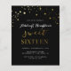 Eleganta söta 16-års födelsedagsfestinbjudningar med falskt guldstjärnkonfetti och trendig typografi mot en svart bakgrund. Med en stilren kombination av kalligrafi och serif-teckensnitt som visar "Sweet Sixteen". Som en del av budgeturvalet här på Zazzle kommer dessa inbjudningar inte med kuvert och passar inte heller tätt i ett standardstort kuvert. Den närmaste storleken är A6, men det kommer att finnas ett mellanrum på ungefär en halv tum. Om du inte har något emot att det inte passar tätt kan du använda sådana lättillgängliga A6-kuvert. Annars kan denna design överföras till ett standardformat 5x7 (som kommer med kuvert) med hjälp av designöverföringsverktyget. Som en grov guide, vid tidpunkten för skrivandet, skulle 100 budgetinbjudningar (inklusive volymrabatt) kosta runt 39 dollar, medan 100 standardinbjudningar i