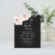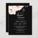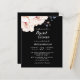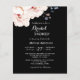 Denna Budget Blommiga Bröllopsfest Folder - har rosa vattenfärgrosor med dammiga blå kvistar på en elegant svart bakgrund. Baksidan av bröllopsinbjudan är också svart.