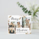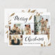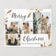 Budget, Elegant, Moderna Guld Botaniska Löv 4 Foto Collage God Jul Holiday Kort. Detta festliga, minimalistiska, fantasifulla fyra (4) foto julkortsmall har en snygg fotokollage, falska guld folie botaniska blad, vinterbär och säger God Jul! „God Jul” hälsningstexten är skriven med en vacker handskriven typsnittsstil på vit bakgrund. På baksidan en horisontell bild med guldbildram och falskt guld glitterfolie blad arrangemang på vit. Snyggt minne för din familj och vänner denna jul och högtids säsong. Billiga julkort.