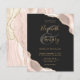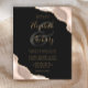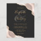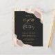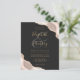 En elfenbensvattensfärgad agatdesign med falskt guldglitter visas i två hörn av denna eleganta design. Personifiera den med parets namn i guldfärgad handskriven skrift över ett stort grått et-tecken. Lägg till bröllopsinformationen i guldfärgade koppartryck och kursiv stil på en skiffer svart bakgrund. Baksidan har en matchande elfenben och gul agatdesign. OBS: Kuvert ingår inte automatiskt med dessa budgetinbjudningar, så glöm inte att välja alternativet "vita kuvert"!