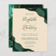 An emerald green watercolor agate design trimmed with faux gold glitter appears in two corners of this elegant design. Personalize it with the couple's names in green handwriting script over a large beige ampersand. Add the wedding details in green copperplate and italic fonts on a champagne beige background. The reverse side features a matching green and gold agate design.