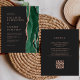 Högerna kant i denna elegant innehåller en modern bröllopsinbjudan en framväxande grönt vattenfärg agate gräns trimmad med faux ro guld glitter. I anpassadet kombineras dammig ro rosa serif, copperplate och italic typsnitt på en skiffersvart bakgrund. Den omvända sidan ger plats för bröllop-information på en solid skifferbakgrund, tillsammans med en QR-kodgäst som kan söka på din webbplats och OSA, vilket sparar kostnaderna för utskrift och utskick av separat OSA kort.