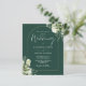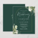 Denna budgetvänliga eleganta botaniska grönska blad bröllopsinbjudan kan anpassas med din information i chic typografi med dina monogram-initialer på baksidan på en smaragdgrön bakgrund. Designad av Thisisnotme