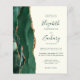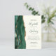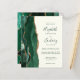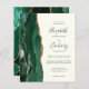 Den här elegantens lämnat kant har en modern bröllopsinbjudan och en framväxande grönt vattenfärgsagat gräns trimmad med faux guld glitter. Anpassadet kombinerar skript, kopieringsskylt och kursivt typsnitt i emerald grönt på en elfenbensbakgrund. Den omvända sidan har en matchande framväxande grönt och guld agate-design.