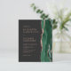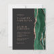 Högerna kant i denna elegant innehåller en modern bröllopsinbjudan en framväxande grönt vattenfärg agate gräns trimmad med faux ro guld glitter. I anpassadet kombineras dammig ro rosa serif, copperplate och italic typsnitt på en skiffersvart bakgrund. Den omvända sidan har en matchande framväxande grönt och ro guld agate-design.