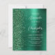 Den lämnat kant i eleganten är en modern bröllopsinbjudan som är ett framväxande grönt faux glitter gräns. Anpassadet kombinerar vit handskrift och sans serif typsnitt på en grönt faux borstad metall bakgrund. Den omvända sidan har en passande utformning av grönt glitter och borstad metall.