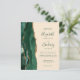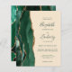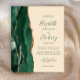 Den här elegantens lämnat kant har en modern bröllopsinbjudan och en framväxande grönt vattenfärgsagat gräns trimmad med faux guld glitter. I anpassadet kombineras handskrift, tryckplåt och kursivt typsnitt på en champagnebakgrund. Den omvända sidan har en matchande framväxande grönt och guld agate-design.