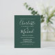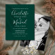 Med ditt foto, signaturstilnamn, kan denna eleganta budget smaragdgröna bröllopsinbjudan anpassas med din information i chic bokstavsstil. Designad av Thisisnotme©