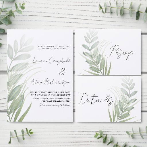 Budget Enkel Grön Växtlighet Bröllopsinbjudan