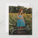 Denna moderna, eleganta stilrena examensannonsering inbjudan kombination har en skript examen överlägg och anpassningsbart namn, skola och foto på framsidan. Baksidan har gratulationer och evenemangsinformation med ytterligare 2 bilder. Ett bra sätt att visa upp din examen.