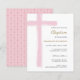 Budget Enkel Vattenfärg Rosa Kors Flicka Dop Inbjudan