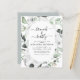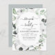 Budgetvit Blommigt Ro och Eucalyptus Botanical Grey Watercolor Vår eller Summer Bröllop Brunch och Bubly Champagne Inbjudningskort för möhippa - innehåller vackra och elegant manustypografi med moderna botaniska blommor och grönt för att den speciella bruden ska vara firande.