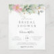 Vackert inbjudningskort för möhippan med rosa blommigt vattenfärgen eukalyptus och guld löv.