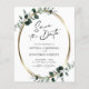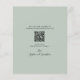 Budget Eucalyptus Guld Modern Calligraphy QR Code White and Sage Bröllop spara datum ... Vårt botaniska Spara datumkortet har en faux guld metallisk oval ram som är förskönad med dammig grönt och emerald-hued eucalyptus löv skapar ett naturligt tittar gräns för annonstexten i. Grönten på baksidan av kortet innehåller webbplatsinformationen för bröllop och ett exempel på QR-kodgrafik som du kan ersätta genom att helt enkelt ange din egen webbadress för bröllop på mallen. All exempeltext på båda sidor av kortet (bortsett från calligraphy inslag) kan enkelt revideras med egna uppgifter på samma anpassningsmall.