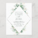Eukalyptus Grönska Botanisk och Grön och Guld Geometrisk Vattenfärg Vår Bröllopsinbjudan på Vit bakgrund - inkluderar vacker och elegant skript typografi med moderna botaniska blad och grönska för den speciella Bröllopsdagens firande.